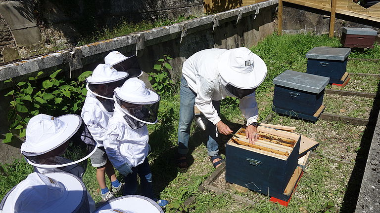 Balichonen eta Caradocen kokatuak dira bi erlategiak. Hiriko zurginek eraiki hiru kofoinez osatuak dira denak. Euskal Herriko Erle Beltzaren etorkitik datoz erle mulkoak.