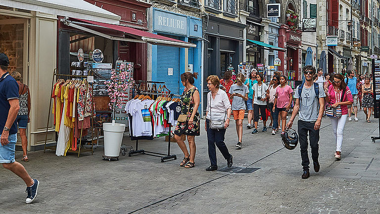 Saltzaileek beren mundura deitzen zaituzte. Baionan erosketen egitea berezia da: begien plazera eta denden asmamena bidelagun ukanen dituzu, eta beste inon atzematen ez diren leku eta eskaintzak ikusiko dituzu.
