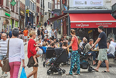 Nire kontua Nire sarbide lasterra Joan zaitezte Gazte Guraso Wazemank Elkartea Familia Senior Ekintzailearen Turismo Atal bereanAtal berean hautatuAgendaEzagutzekoaKulturaIzadia hirianKirolak eta aisialdiakErosketakEzagutzekoaBegi ukaldi batez, aurki itzazu leku edo ekitaldi nagusiak memento atseginaren pasatzeko Baionan.Lachepaillet zezen plazaBaionako zezen plaza 1893an eraiki zen, estilo neo-moriskoarekin, eta Frantziako hego-mendebaldeko handiena da; izan ere 10 000 toki baditu jarririk.Baionako bestakBaionako bestak dira Ipar Euskal Herriko besta ezagunenak eta igurikatuenak. Bost egunez, uda minean, hiria bestaren hiriburua bihurtzen da,…TurismoaHistorikoki Baiona bilgune hiria da, ondare eta merkataritza hiria, zerbait berezkorik eta bizitzeko antzea duen hiria. Baiona beti izan turismoari…MerkatuakEstalia, aire librekoa, hatu merkatua… Egunero baduzu merkatu bat zain Baionan. Harri batez bi xori: produktu freskoak erosi, eta hiria biziarazi.ShoppingBaionan, erosketek ere nortasun azkarra dute. Saltegi atipikoek, tokiko ekoizleen merkatuek, tokiko berezitasunek eta eskualdeko ekoizpenek Baionari…GastronomiaBaiona xingarragatik eta txokolateagatik famatua da, baita ere bizitzeko antzeagatik et gastronomiagatik. Horiek dira bere bi produktu nagusiak…Ostatu-jatetxeakJatetxeak, kafetegiak, bodegak, txokolategiak, dute-pastizategiak, pubak... Denetarik atzemanen duzu Baionan.OstatalekuakBaionan ostatu hartzeko leku franko bada: maila orotako hotelak, arrotz logelak, aterpetxeak… Bakoitzak doakion aterabidea atzemanen du.