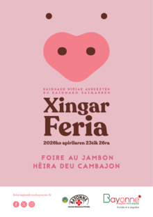 Nire kontua Nire sarbide lasterra Joan zaitezte Gazte Guraso Wazemank Elkartea Familia Senior Ekintzailearen Turismo Événements, Langue basqueBaionako xingar feria1 dokumentuaData honetan argitaratua 09 April 2026 Xingar feriraren 563. edizioa 2026ko apirilaren 23tik, apirilaren 26ra ospatuko da.Xingar Feria (.pdf, 552,9 KB) Deskargatu Irakurri Argitalpen guziak