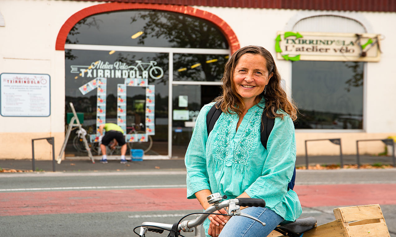 “Ttipitatik, bizikletaz ibiltzeko ohitura dut. Nire gurasoek guti erabiltzen zuten beribila; eskolara eramaten gintuzten bizikletaz, lanera joaten ziren bizikletaz, erosketak egiten bizikletaz... Beraz, ibilmolde naturala bilakatu da.” San Izpiritu auzotegian bizi bere senarrarekin eta ama eskolan diren bi alabekin, berak ere bidaia gehienak bizikletaz egiten ditu: merkatura, mediatekara, eskolara, eta urrunago ere, xitxuketa saltegi handietara edo hondartzara. “Maiz beribilez baino denbora gutiago ematen dugu eta hain atseginagoa da!”, gehitzen du.