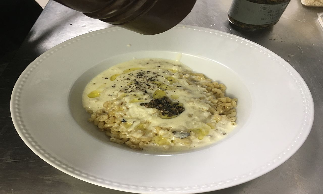 La recette des coquillettes à la crème de comté et gruyère & à la brisure de truffes d’été de Jérôme Bergemayou