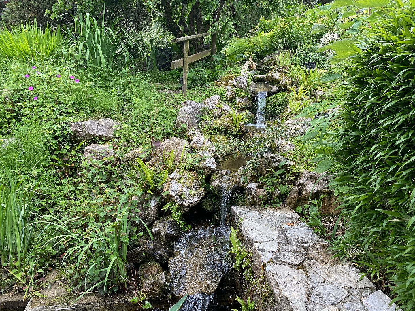 Lorategi botanikoko ekipoa hezia da ingurumena errespetatzen duten teknika hauetan, landareak beren elkarreraginen eta beren defentsan indartzeko duten elkarreraginaren arabera hautatuak dira. Ur-jauzi tiki bat arro tikietarantz doa, eta bertan ur-landareak hautatuak izan dira beraien propietate saneatzaileentzat.
